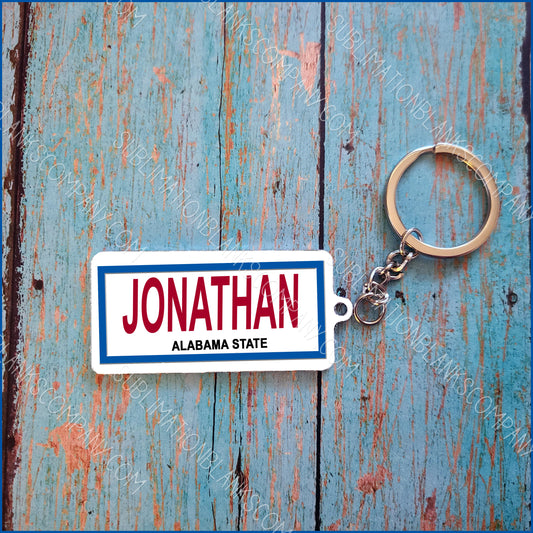2-Sided License Plate Rectangle Aluminum Key Chain Sublimation Blank. Laserable!