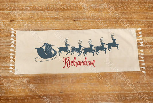2-sided Farmhouse Burlap Linen Table Runner Sublimation Blank with Tassel Trim!