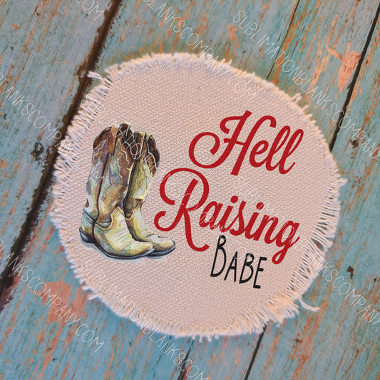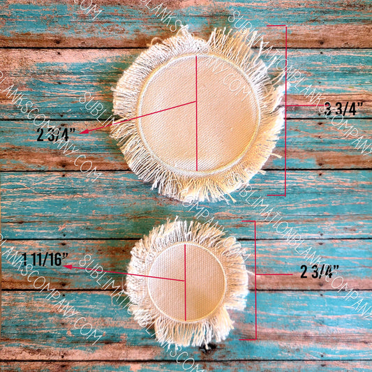Round Distressed Burlap Hat Patch Sublimation Blank with Glue Paper. Raggy