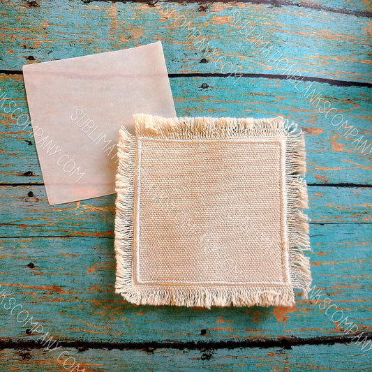 10 pcs! Square Raggy Distressed Burlap Center Stitched Hat Patch Sublimation Blank with Glue Paper