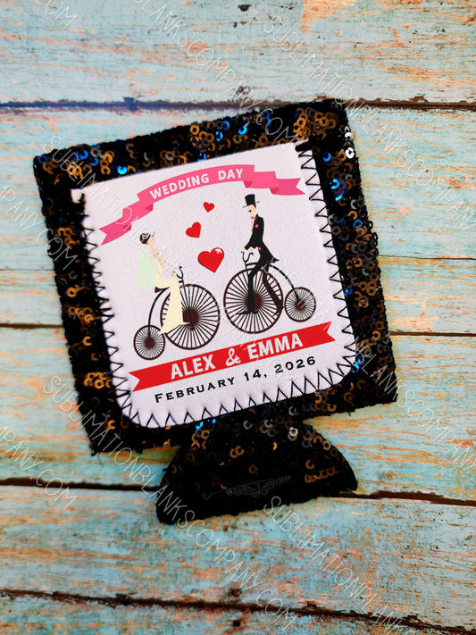 Black Sequin Neoprene Koozie with White Pocket Sublimation Blank! Can Cooler