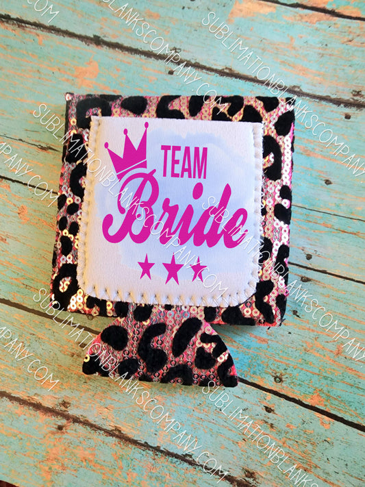Pink & Black Leopard Sequin Neoprene Koozie with White Pocket Sublimation Blank! Can Cooler