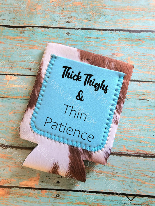 Cow Print Neoprene Coozie with Blue Pocket Sublimation Blank! Can Cooler
