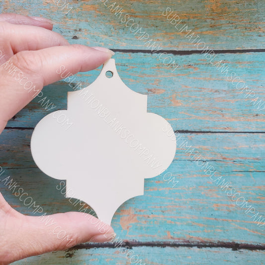 Aluminum Arabesque Tile Shaped 2-sided Christmas Holiday Ornament Sublimation Blank. Also Laserable!