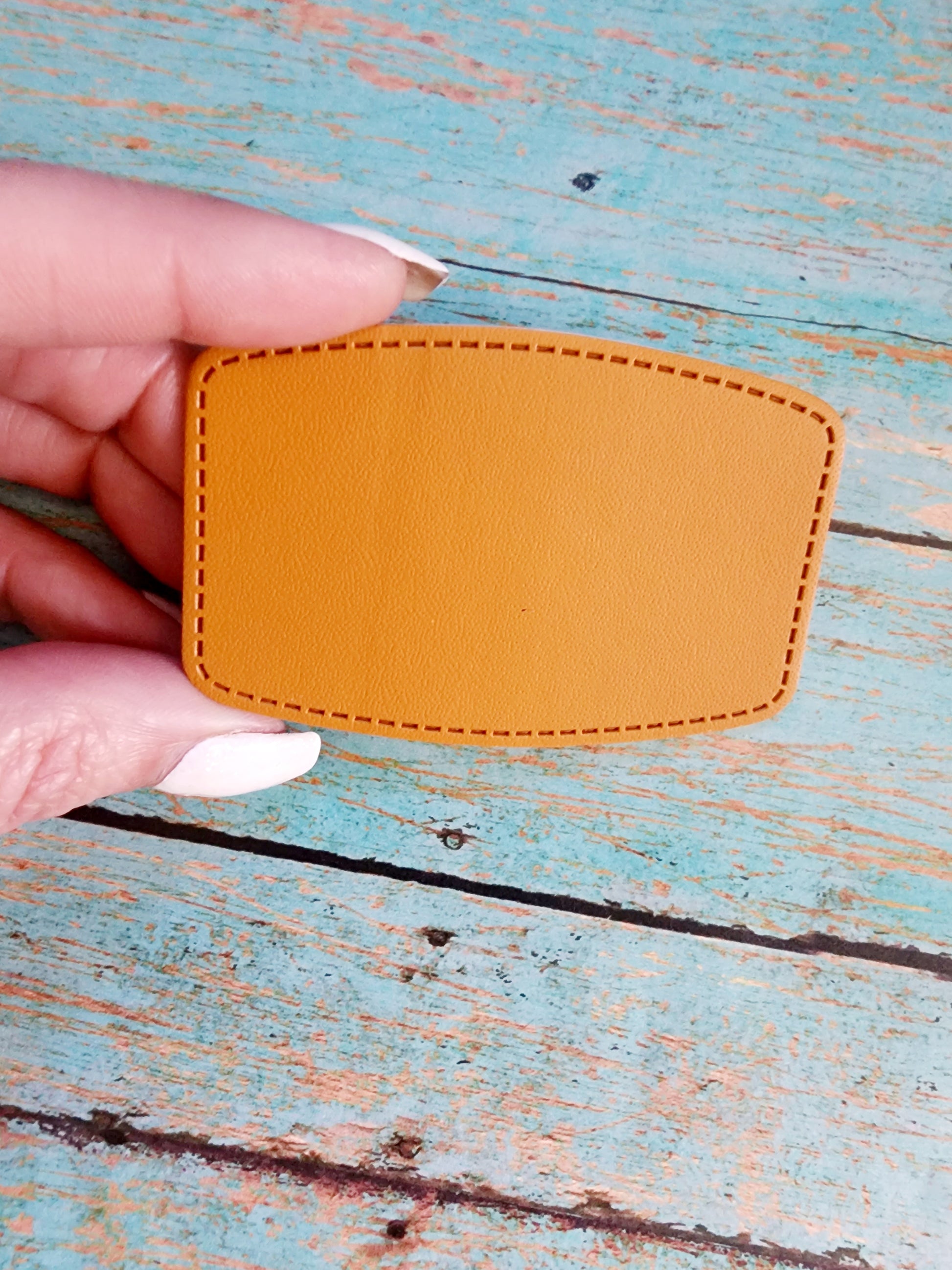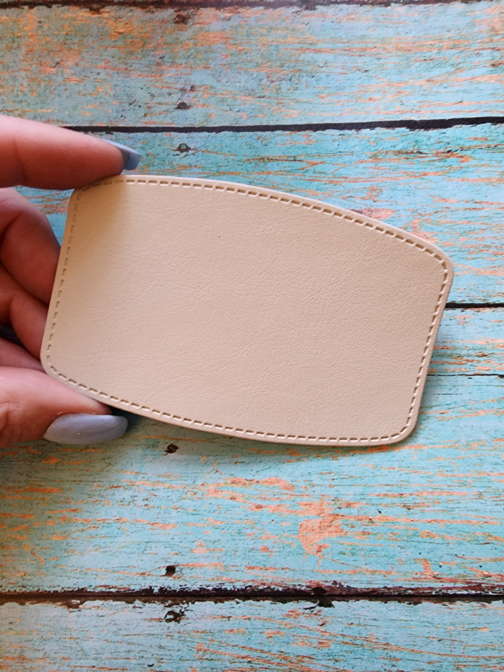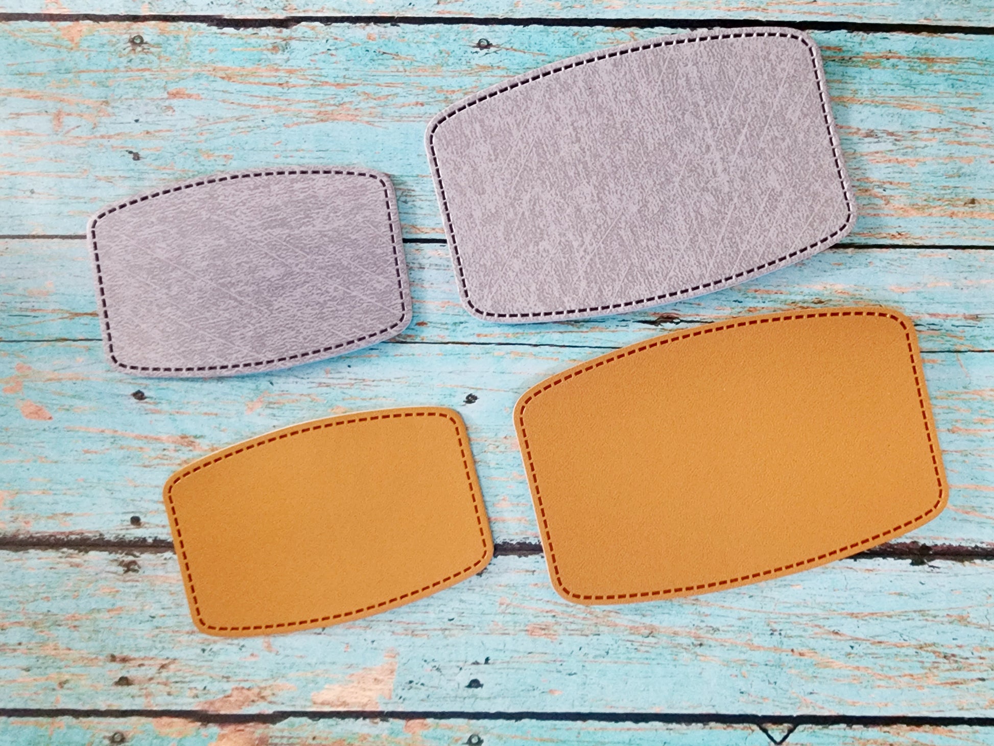 Retro Grey, Sandstone or Tan Leather Hat Patch Sublimation Blank! Rounded Corner Rectangle! Laserable!