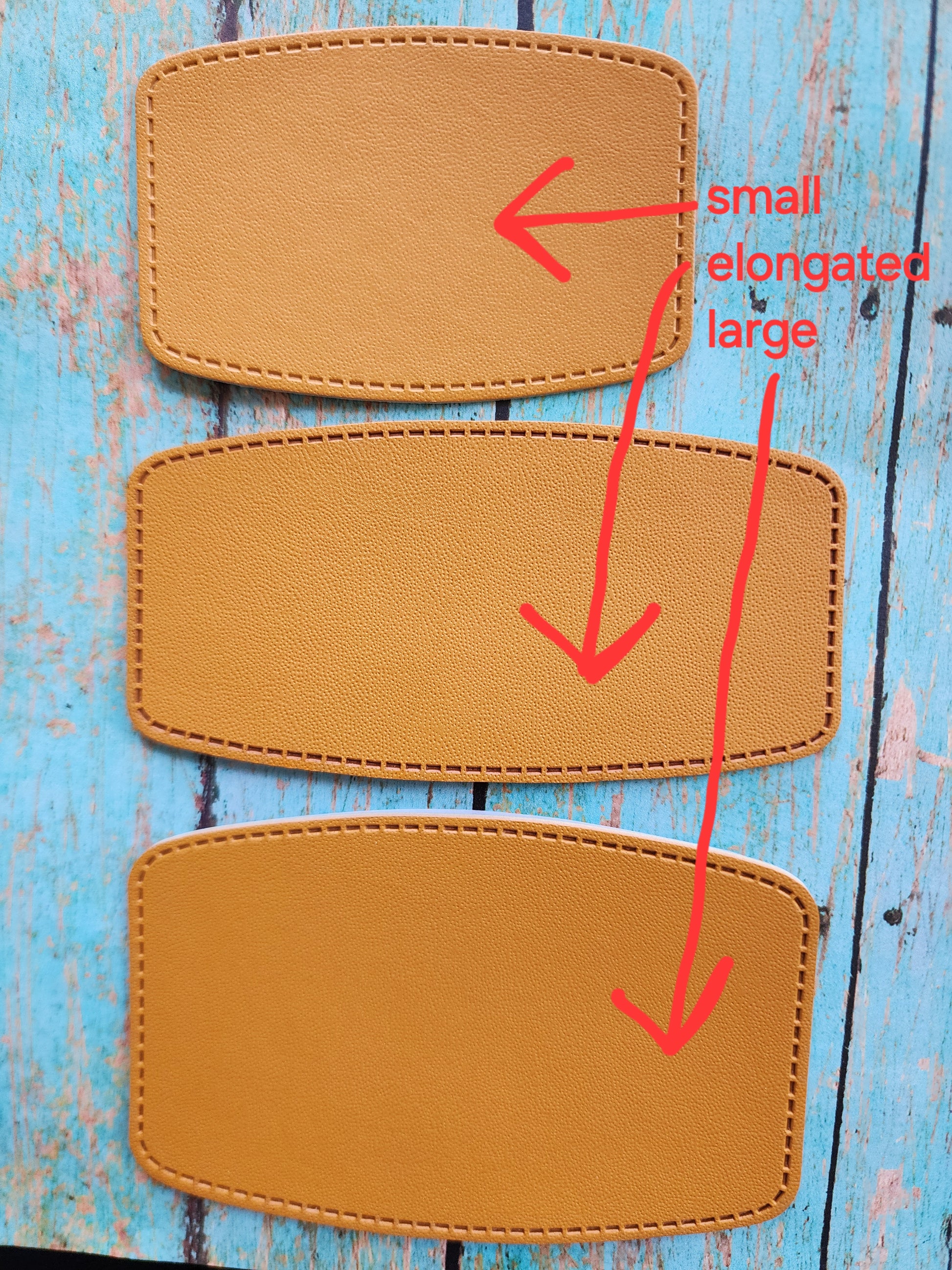 Available in THREE sizes! Large, Elongated and Small! Gray, Tan or Sandstone Faux Leather rounded rectangle hat patch sublimation blanks features an embedded black stitching look all around. They also have a aged textured appearance for that legit leather look is a great that add some retro style to any hat or jacket. Ours have glue paper on the back side which heats up for you to attach to your hat or garment. Neat! Our PU leather round hat patches are sublimation ready!