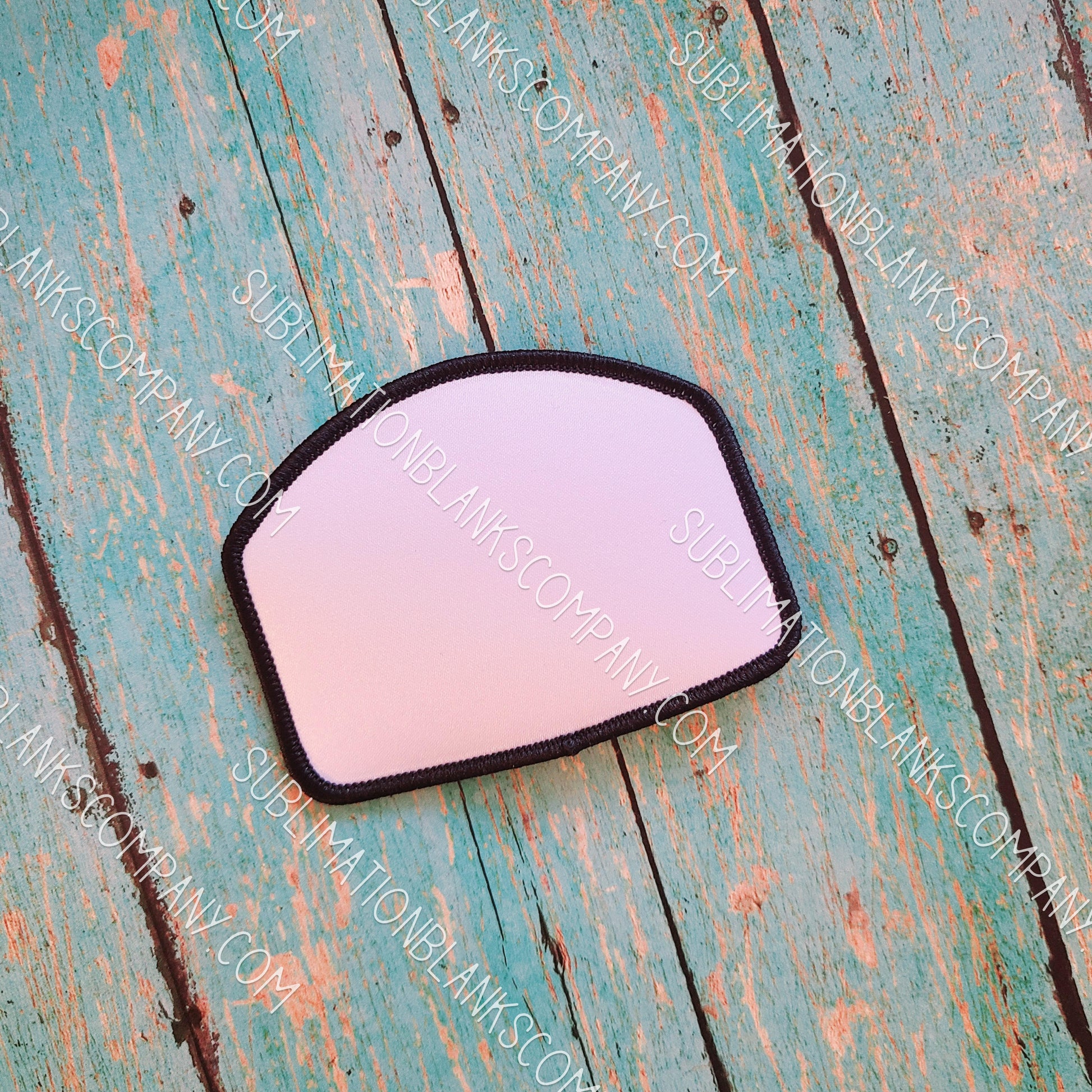 It's different! Our rounded top Rectangle Shape Hat Patch Sublimation Blank with black stitching all around is a unusual way to add a bit of cool factor to any hat or jacket. Ours has glue paper on the back side which heats up for you to attach to your hat or garment. Super! Our inverted hat patches are sublimation ready!